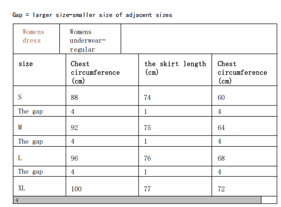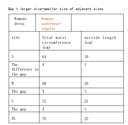 尺码表: