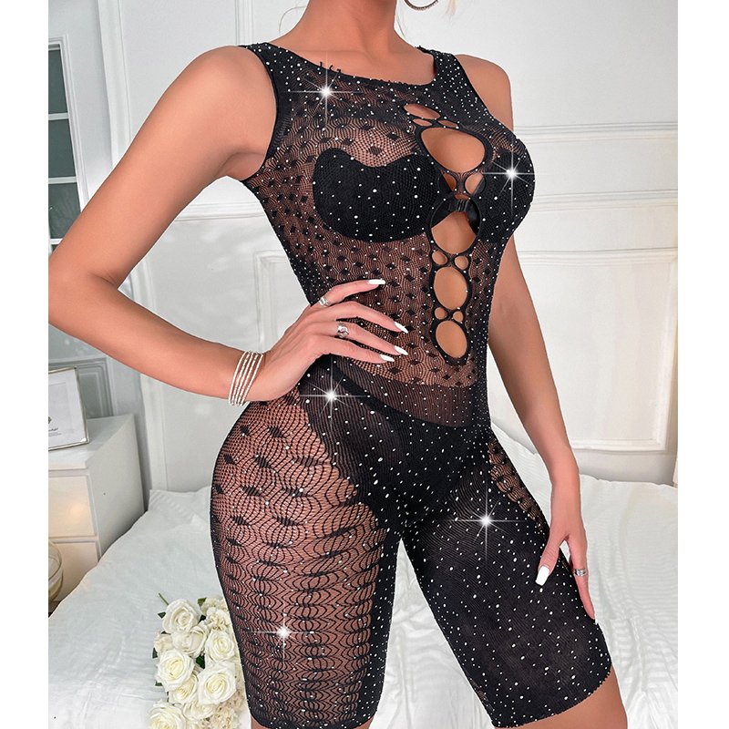 Starry chest hollow girl sexy mesh jumpsuit